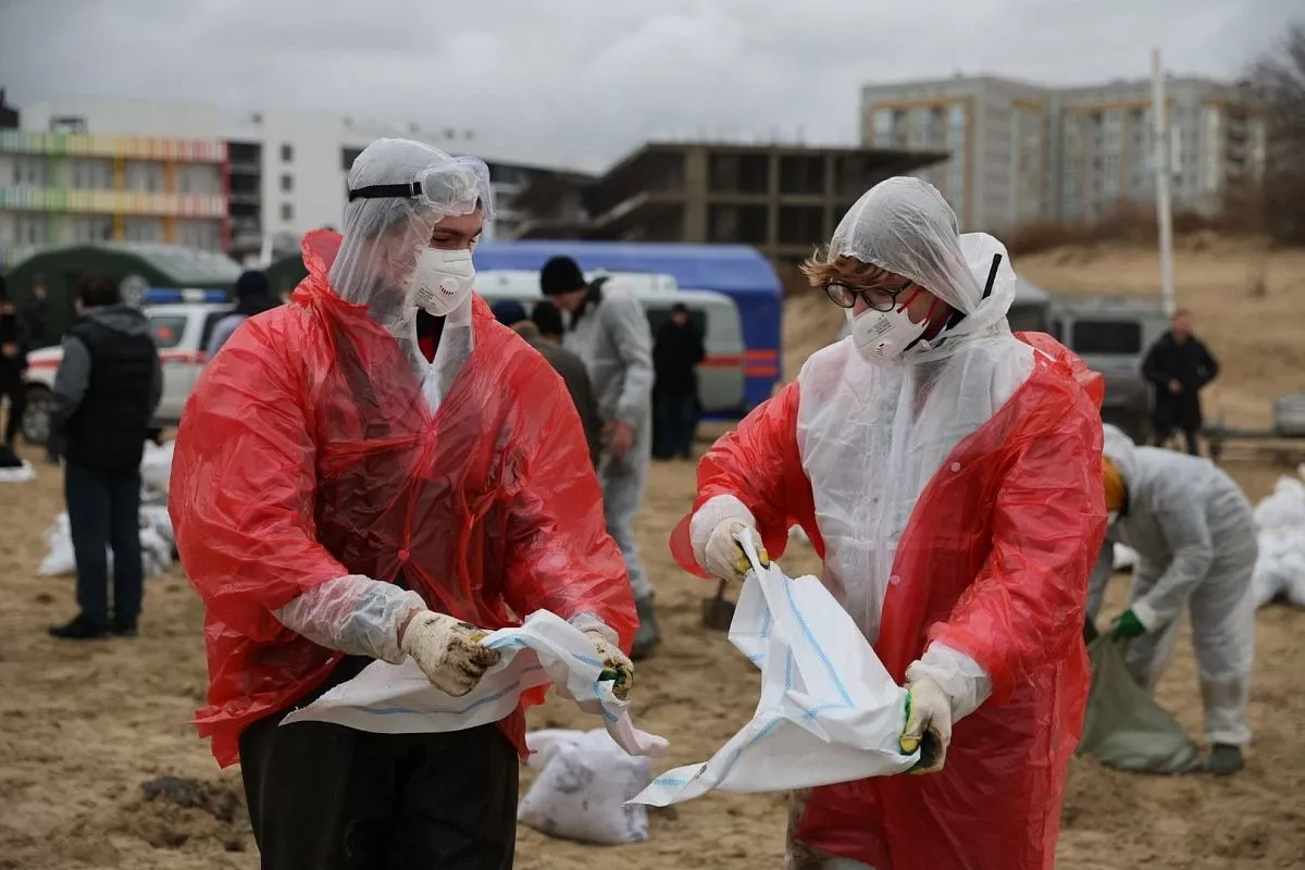 – Загрязнения наблюдаем на протяжении 54 километров. Вынос волной пятен продолжается – только убрали, на следующие сутки опять выносит. Решено добавить большегрузных самосвалов, погрузчиков и мешков для сбора грунта – завтра к концу дня будет техника и 350 тысяч мешков, их раздадут волонтерам, - сказал Александр Козлов.