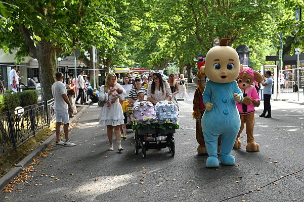Основной площадкой празднования стал Поцелуевский сквер рядом со зданием ЗАГС Центрального района курорта, где также были организованы тематические фотозоны. Здесь прошел парад близнецов и детских колясок, который объединил более 40 семей курорта.
