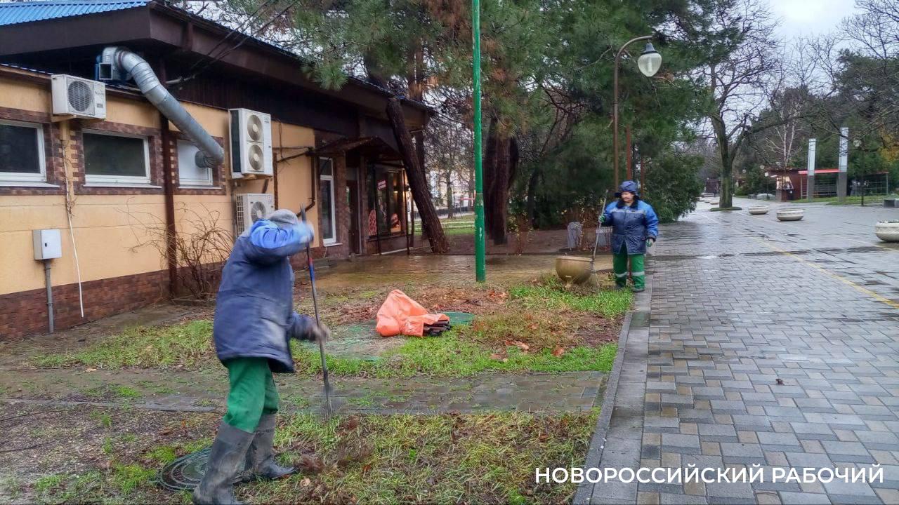 С улиц Новороссийска убирают осеннюю листву и покрышки